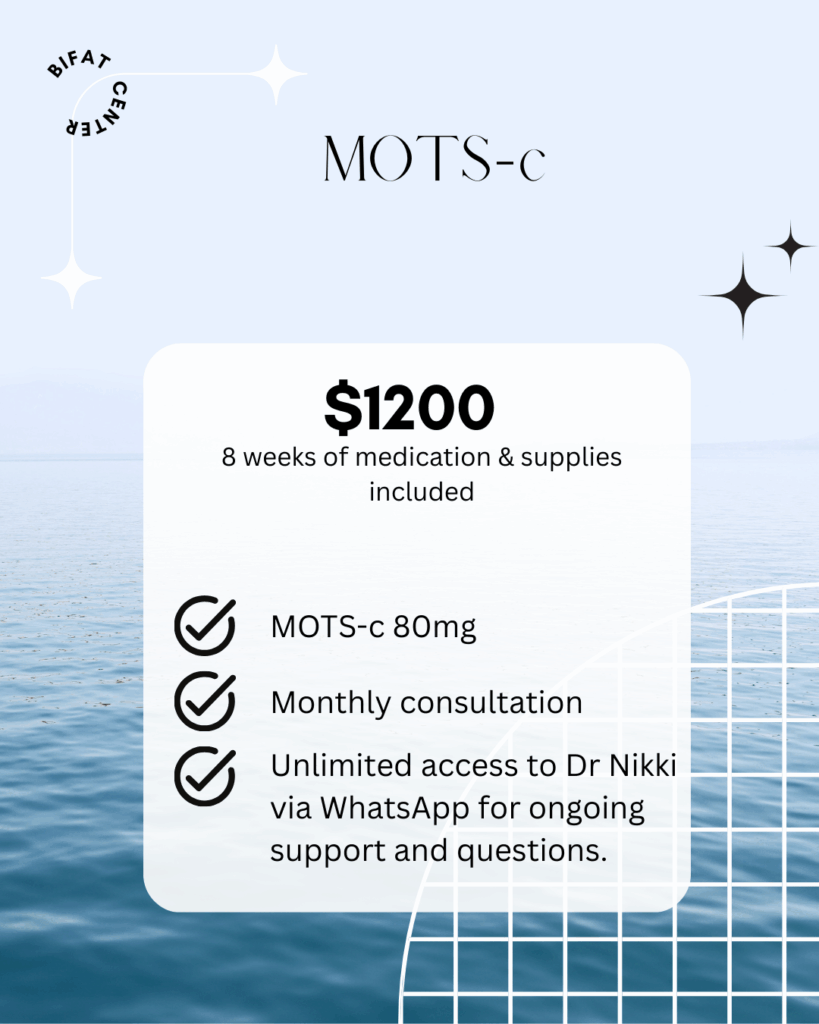 The dosage of MOTS-c varies based on the individual’s current metabolic health and health goals. At the BIFAT Center, your healthcare provider will determine the most appropriate dosage for you.